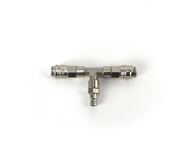 Esta T sirve para enlazar 2 máquinas de confeti con un solo compresor.